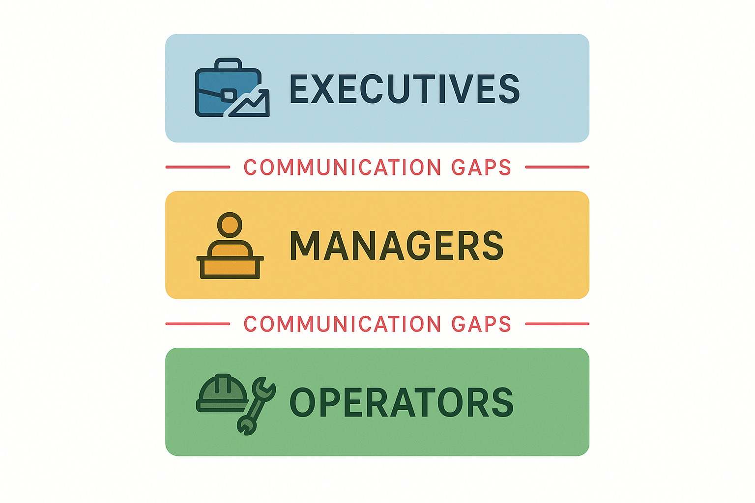 Information simply wasn’t flowing. The operators’ workarounds never made it up to executives. The executives’ strategic vision never translated into operational reality. And the managers, caught in the middle, focused on managing the symptoms rather than addressing the root coordination failure.
