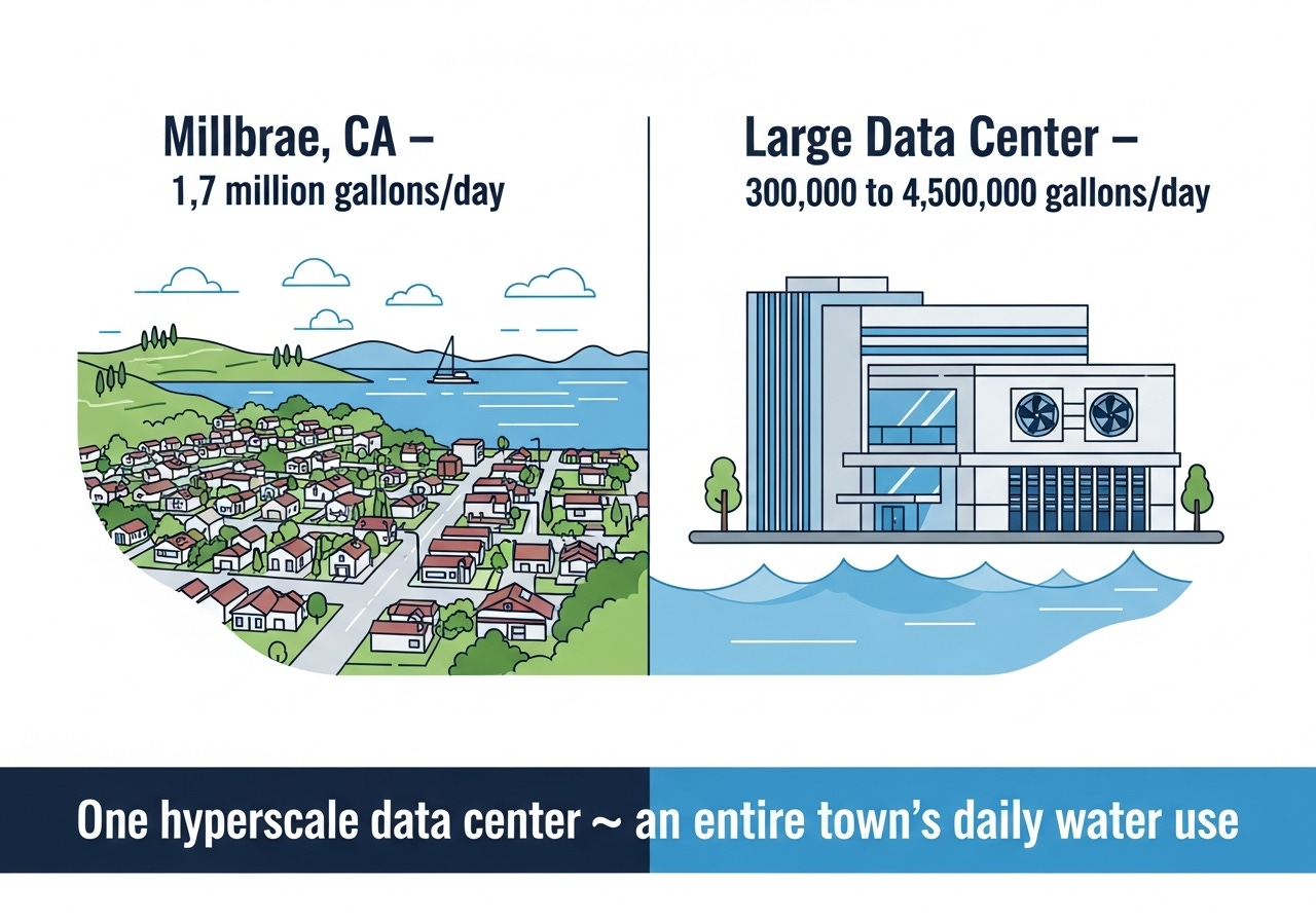 Hyperscale data centers, with their immense, clustered, and round-the-clock water demand, act like a massive, unscheduled stress test. A single large facility can consume anywhere from 300,000 to 4.5 million gallons per day1, a demand comparable to that of a small town.
