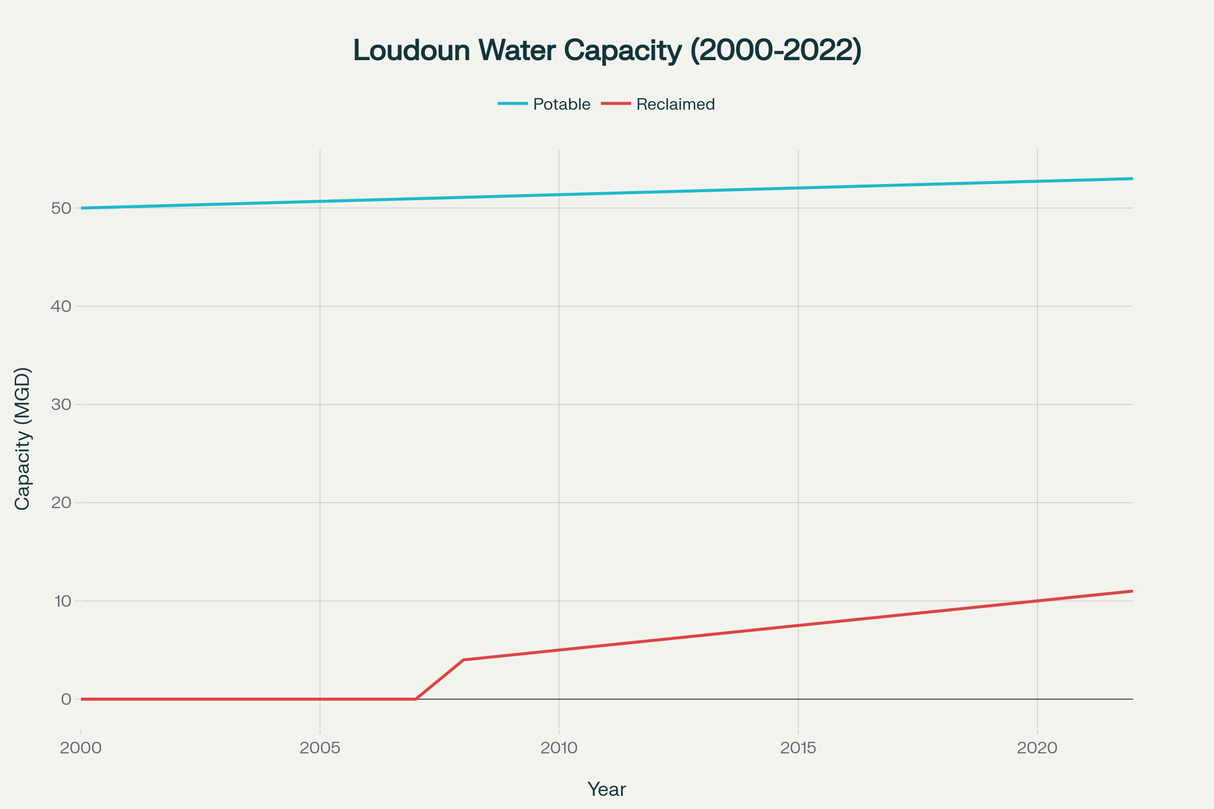 “With approximately 200 data centers built and 117 in the development pipeline. There has not been a single day in 14 years when a data center was not under construction in Loudoun County” Meanwhile over the last 25 years the only meaningful increase in supply has been its 11mgd reclamation plant, which add 28% total capacity.